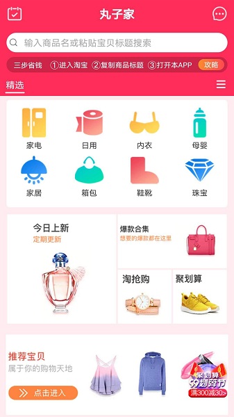 随时随地用手机分享,丸子家帮你轻松实现从消费到创业的转变,一键就能链接淘宝、天猫、京东、亚马逊、考拉海淘等各大电商平台,全球优质商品,全都能一网打尽。