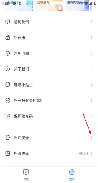 1、打开软件后,进入主页面,查看保险服务等内容,点击我的选项进入个人中心页面。
