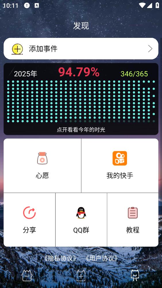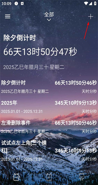 打开软件进入主页面后,先查看已有的计时事件,接着点击页面右上角的加号按钮,即可进入添加计时事件的页面。
