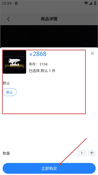 4、在购买确认弹窗里,确认好商品的规格和数量后,点击【立即购买】按钮就能进入支付环节。