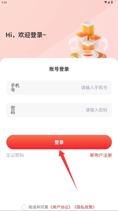 1、初次使用需阅读平台服务条款与隐私政策,确认后点击同意按钮进入应用。