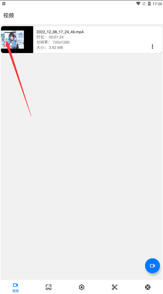 1、打开软件,在视频界面中点击右下角蓝色摄像头图标。