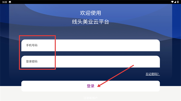 2、进入平台登录页面后,依次填写【手机号码】和【登录密码】,随后点击【登录】按钮,即可完成账号验证流程。