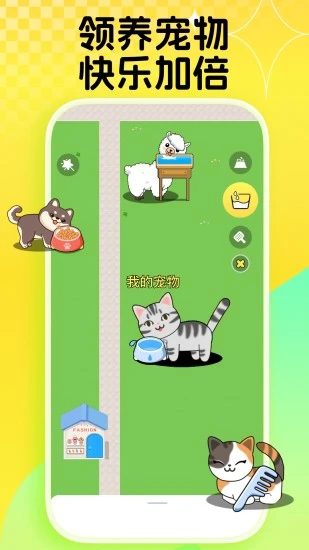 1. 领养可爱的宠物后,你可以陪伴它、喂养它成长,还能借助宠物进行在线交友。