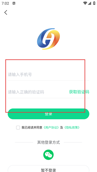 4、进入登录页面后,在【请输入手机号】的输入框中填写手机号,接着点击【获取验证码】按钮,待收到验证码并填入后,点击【登录】按钮即可完成账号登录操作。
