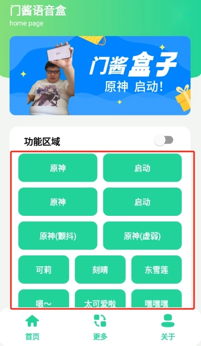 1. 整合了抖音平台上热度极高的门酱原神启动语音盒子应用程序。