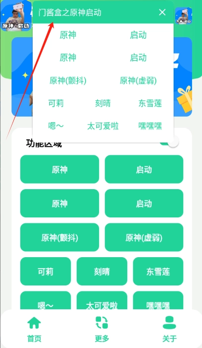1. 打开门酱盒子启动原神,首页设有多个功能区域,各位可根据需求自行选择使用。