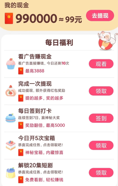 【每日福利】提现立返、每日打卡、开宝箱等超多福利等您来拿!