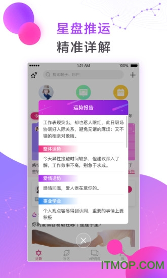 这款音视频交友社区软件以星座为切入点,你可以在这里和百万星座塔罗占卜大师畅快交流。
