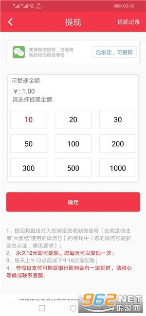 当账户余额满10元即可申请提现至微信钱包,首次提现支持实时到账,后续发起的提现请求,资金最晚将在24小时内到账。