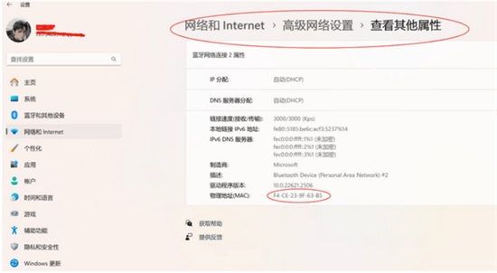 4、最后输入蓝牙地址,该地址可通过打开电脑属性,进入“网络和Internet”选项进行查看。