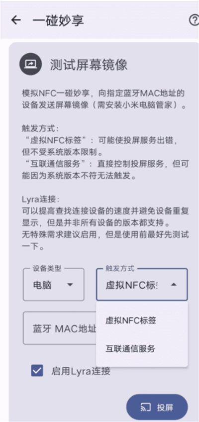3.模拟小米一碰妙享功能,帮助用户更灵活地操控屏幕镜像的触发时机,打破传统连接方式的限制,获得更自由的投屏体验。