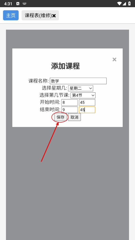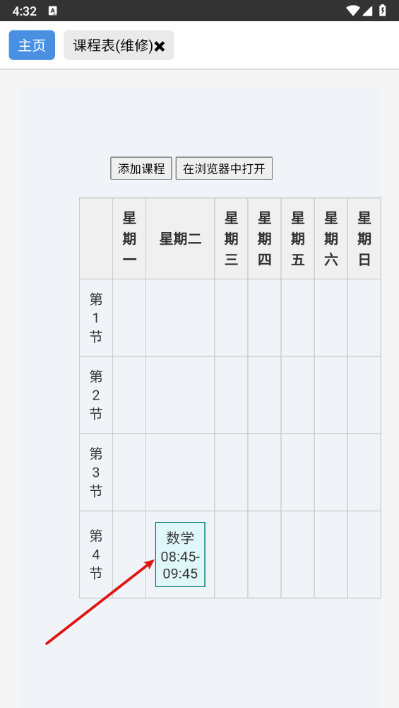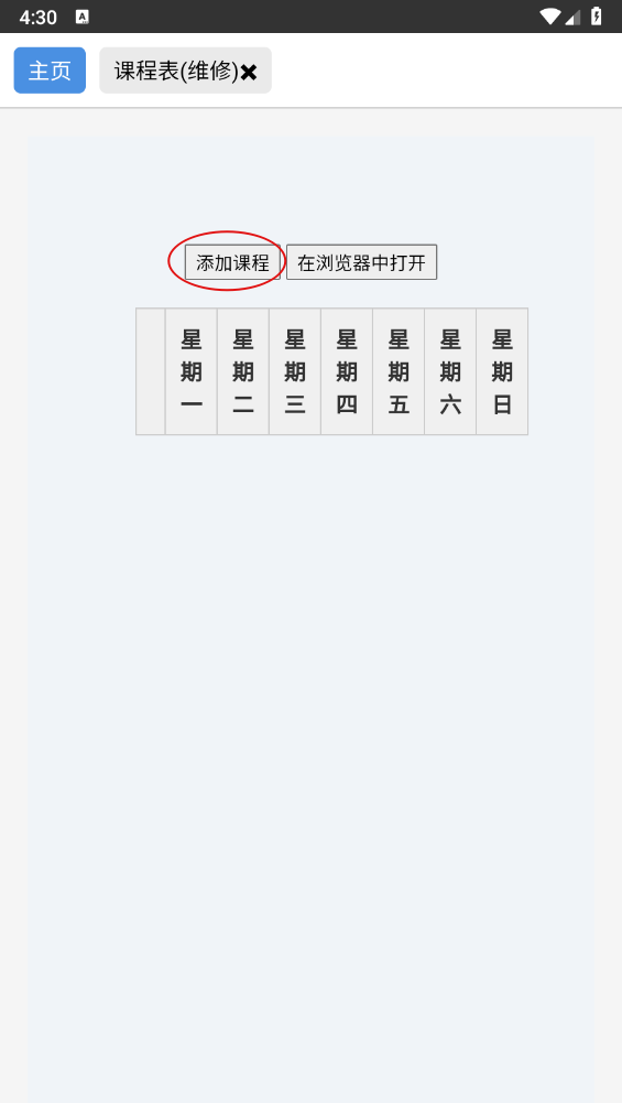 2、如图所示,点击"添加课程表"。
