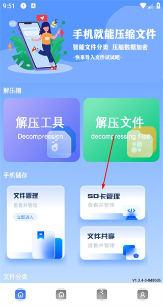 1、打开软件后,进入首页,找到SD卡管理选项,点击进入SD卡文件列表页面。