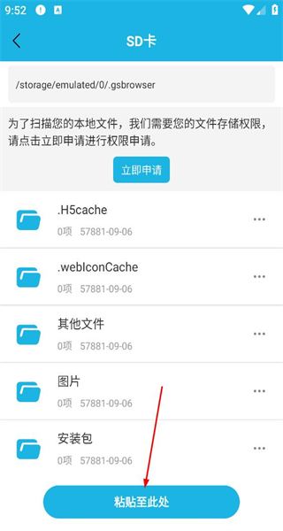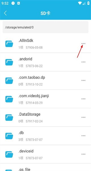 2、进入SD卡页面,浏览展示的文件及文件夹,选择目标文件夹,点击其右侧功能按钮。