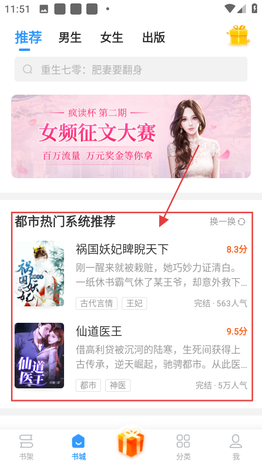在书城都市热门系统推荐板块找到《祸国妖妃睥睨天下》,点击进入书籍详情页哦。