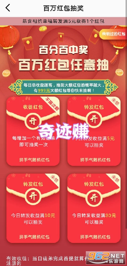 《奇迹赚》是一款能通过阅读文章和转发文章赚钱的软件。平台上提供了丰富的文章资源,用户阅读完文章后,将其转发到朋友圈,就能获得红包奖励。而且转发的数量越多,能拿到的奖励也就越丰厚。平时利用空闲时间,简单动动手转发一下,就能轻松赚钱,感兴趣的话快来体验吧!