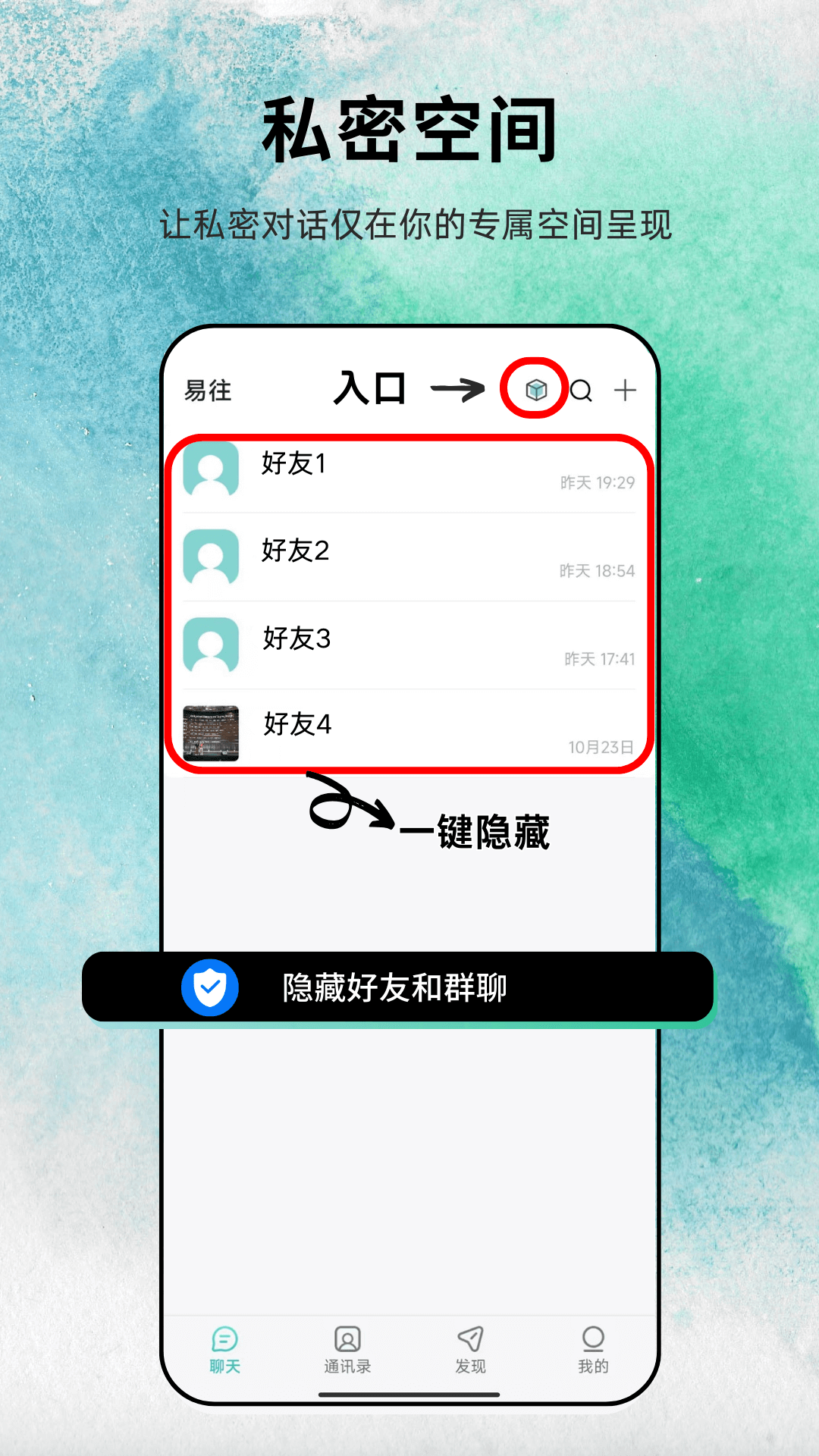 在应用里能轻松发现附近的新朋友,帮助你拓宽社交圈子,而且无需忧虑个人信息会被泄露。应用采用的加密技术可以保障所有聊天内容的安全,让你能安心地和他人交流。易往聊天另外还配备了私密空间功能,你可以选择把特定的好友和群聊隐藏起来,以此确保私人对话不会被其他人窥探到。
