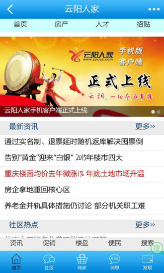 云阳人家客户端能助您及时知晓云阳本土资讯、房产信息、企业商家黄页,以及招聘求职、征婚交友、二手信息等各类消息。这里是重庆云阳颇具网络人气与影响力的社区。