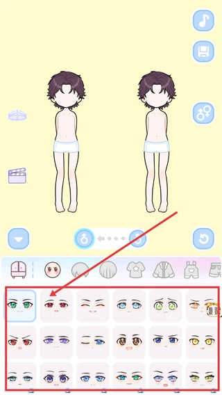2、在装扮界面,选择底部的眼部样式栏,点击目标眼型(如绿色眼眸),即可为角色更换对应的眼部外观。