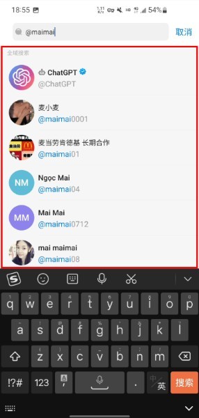 在搜索框中输入群组地址格式为 @后面加群组名。