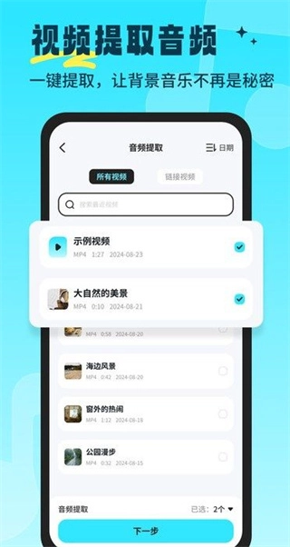 音频提取支持将音频,视频文件中的声音进行提取,同时将其转为一个音频文件