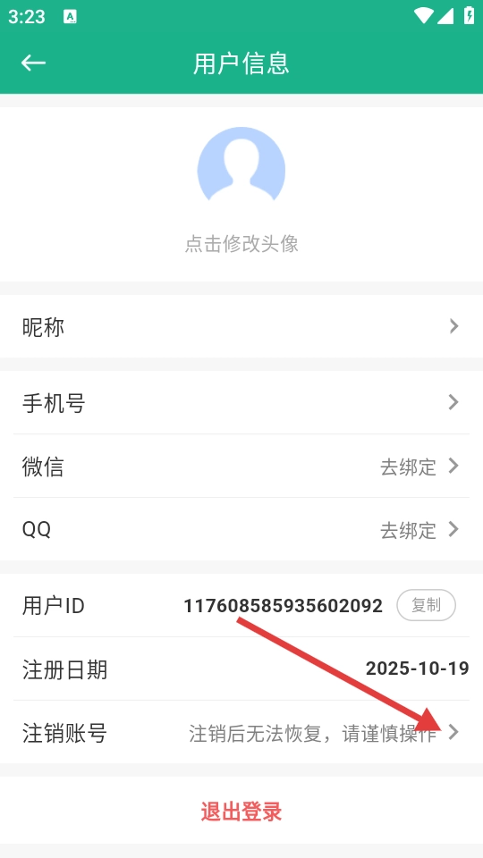 3、在用户信息页面点击【注销账号】选项,即可进入账号注销说明页面。