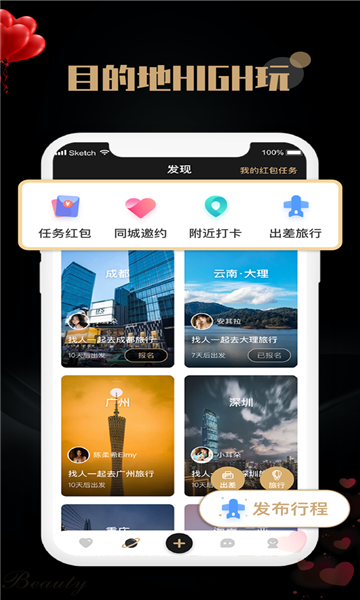 觅尤这款软件怎么样?是否靠谱呢?它专为经常出差或旅行的人士设计,致力于打造一个充满趣味且内容丰富的交友体验。在这里,你能够添加附近的好友,并且所有用户都经过了实名认证,让同城约会变得更加便捷。此外,你还可以在线上与好友一起玩游戏、聊天互动,从而增进彼此之间的友谊。如果你对此感兴趣,不妨来试试吧!