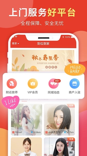 这款软件作为交易撮合平台,与全国养生保健人员职业培训学校展开合作,保障技师的专业性。平台的每一位从业人员都需通过层层选拔、专业技术认证和实名制认证,有效避免纠纷的发生;此外,合作商家会提供专业器材,用户无需自行准备相关设备。