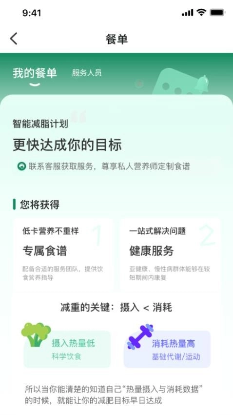 可以在线定制专属的健康营养食谱进行三餐饮食使用;