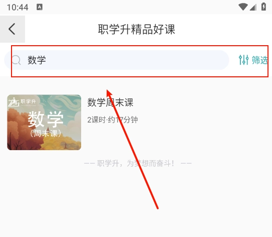 3、在顶部的搜索框中快速查找课程,输入想要查看的课程名称后,点击筛选按钮即可。