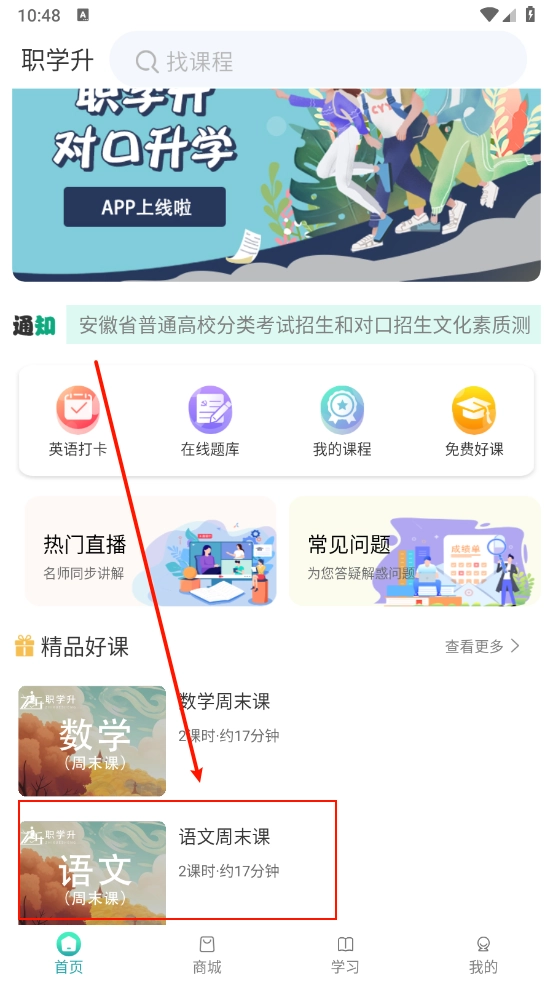 职学升是一家专注于对口单招教育、高考志愿指导等服务的平台,该平台整合了安徽省内丰富的中职、高职和本科教育优质资源,配备了专业的师资力量,同时提供了多种精选的视频课程与直播课程,旨在帮助学生提升学习成绩。