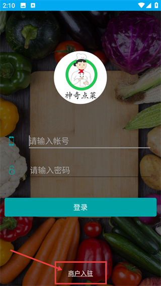 1、在“神奇点菜”的登录页面,点击底部的【商户入驻】按钮,即可进入商户入驻的信息填写界面。