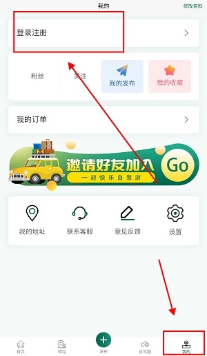 2、在我的页面点击登录注册。
