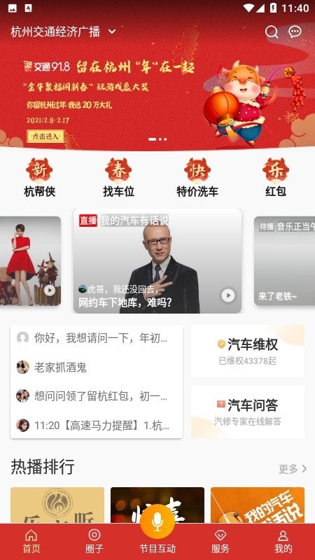 【电台互动】全国百家省市交通广播,为你带来鲜活热辣的本地话题、及时准确的新闻路况、接地气的段子音乐,还有惊喜不断的红包福利,更能与全国同城、同车型车友开心互动,总有一款适合你!