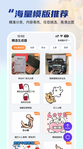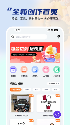 素材丰富多元:乐图生成器配备九个不同类别的海量素材库,每日更新的内容让您能够时刻紧跟最新的热点潮流。