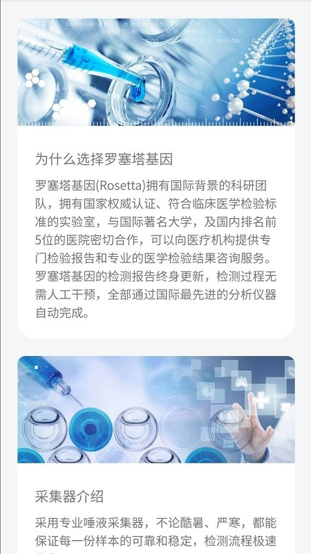 罗塞塔基因检测是一款极为严谨的基因检测技术软件。通过它的设计,众多人得以领略全面的医疗检测实力。同时,该软件还会为用户详细科普基因检测技术。多项研究表明,它能让更多人接触到全面的学习内容。而且,借助这项基因检测技术,多项基因病都能被检测出来。有需求的小伙伴,不妨与小编一同尝试一下这款软件!