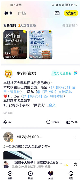 2、除直播外,用户在此还能刷有趣视频、听人间故事等。