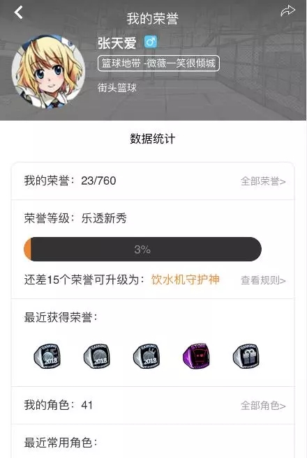 在荣誉系统里,每个玩家都会有专属的荣誉等级,等级越高,你在排行榜上的名次就越靠前。玩家将从乐透新秀起步,逐步晋升为饮水机守护神、轮换球员、最佳第六人、超级新秀、球队基石、全明星、超级巨星、名人堂成员,最终成为篮球之神。