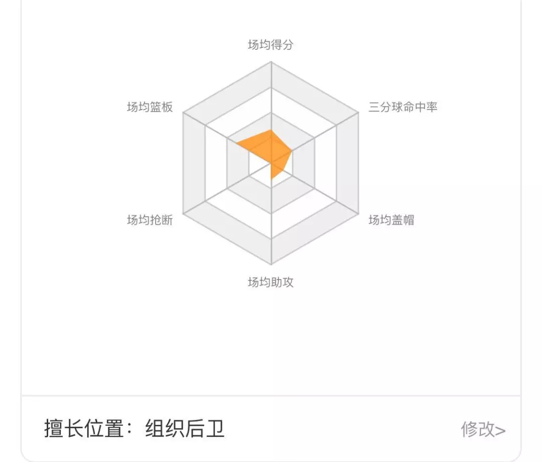 数据统计也会对玩家的六芒星能力展开分析,涵盖场均得分、三分球命中率、场均盖帽、场均助攻、场均抢断和场均篮板这些方面。