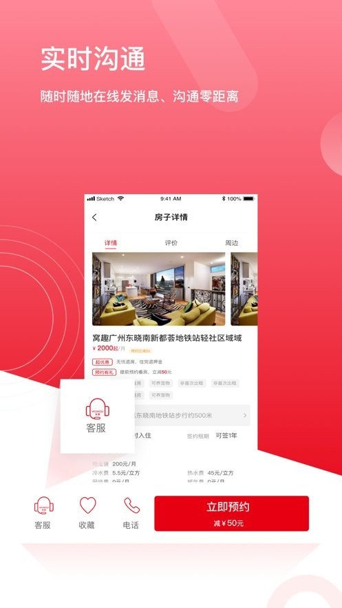 4、与实名认证经纪人进行在线沟通,语音、图片等多种交流方式,直观、便捷,减少不必要的骚扰,防止个人信息外泄。