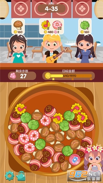 在这款游戏里,你将成为一家火锅店的经营者,形形色色的客人会陆续前来光顾。你要做的就是满足客人们的用餐需求——在火锅中找到他们想要的食材,接着通过拖动手指将3个及以上相同的食材连接起来,就能完成一次消除操作。当你成功满足客人的需求后,便能获得金币奖励,这些金币可以用来升级你的店铺设施和各项技能,让你经营的火锅店一步步发展壮大。