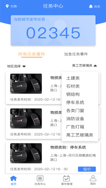 平台供应商针对业务员发布的供应商维修事件,向后台管理系统提供报价。