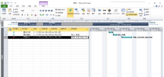 4、选中第二个任务,接着点击菜单项里的【任务】选项,之后再点击【降级任务】,具体操作可参照图示。
