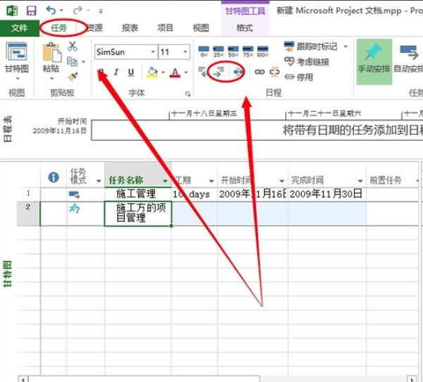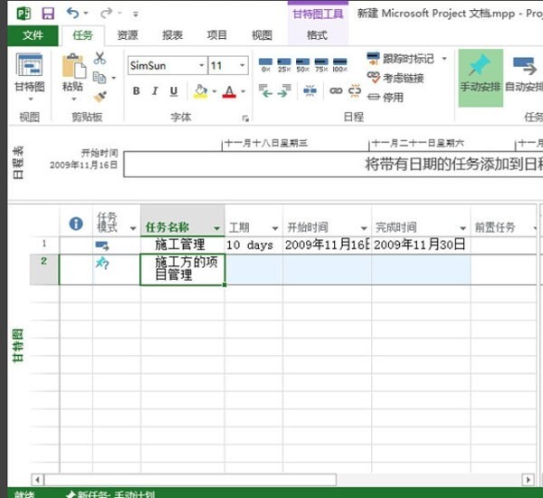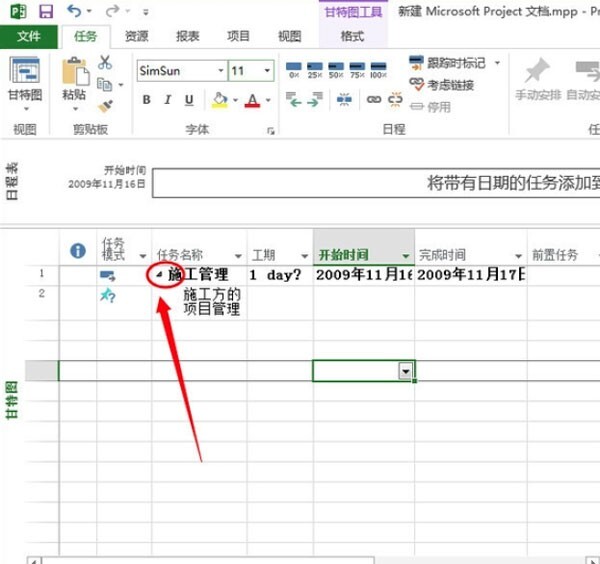 1、打开新建的项目,点击任务名称对应的单元格,创建第一个主任务。