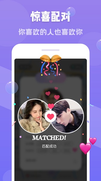 推荐卡:依据用户间的匹配程度,能够达成用户好感度的匹配;点击“喜欢”按钮,就能完成关注并进行互动。