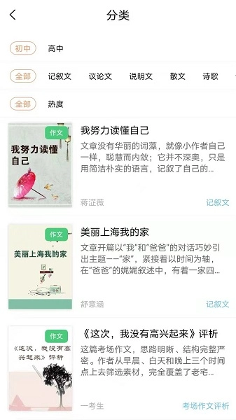 用户在软件里可以获取到丰富的优秀作文资源,借助这些不同类型的作文,能从中得到更多的写作灵感和参考素材。