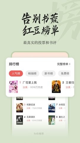 无限网文助你告别书荒,这里有权威的红豆榜单与评分体系,还有真实的用户投票和走心书评。依托真实读者的评分数据打造全网小说榜单,为书迷精准推荐心仪的优质小说,以真诚的书评交流书荒难题。