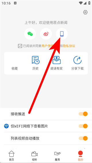 1. 开启原点新闻,轻点底部“我的”选项,从而进入个人页面。