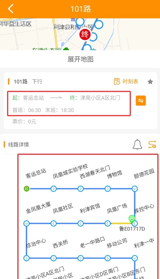 3、点击公交线路后,界面会显示起点站、终点站,同时还能查看线路详情。